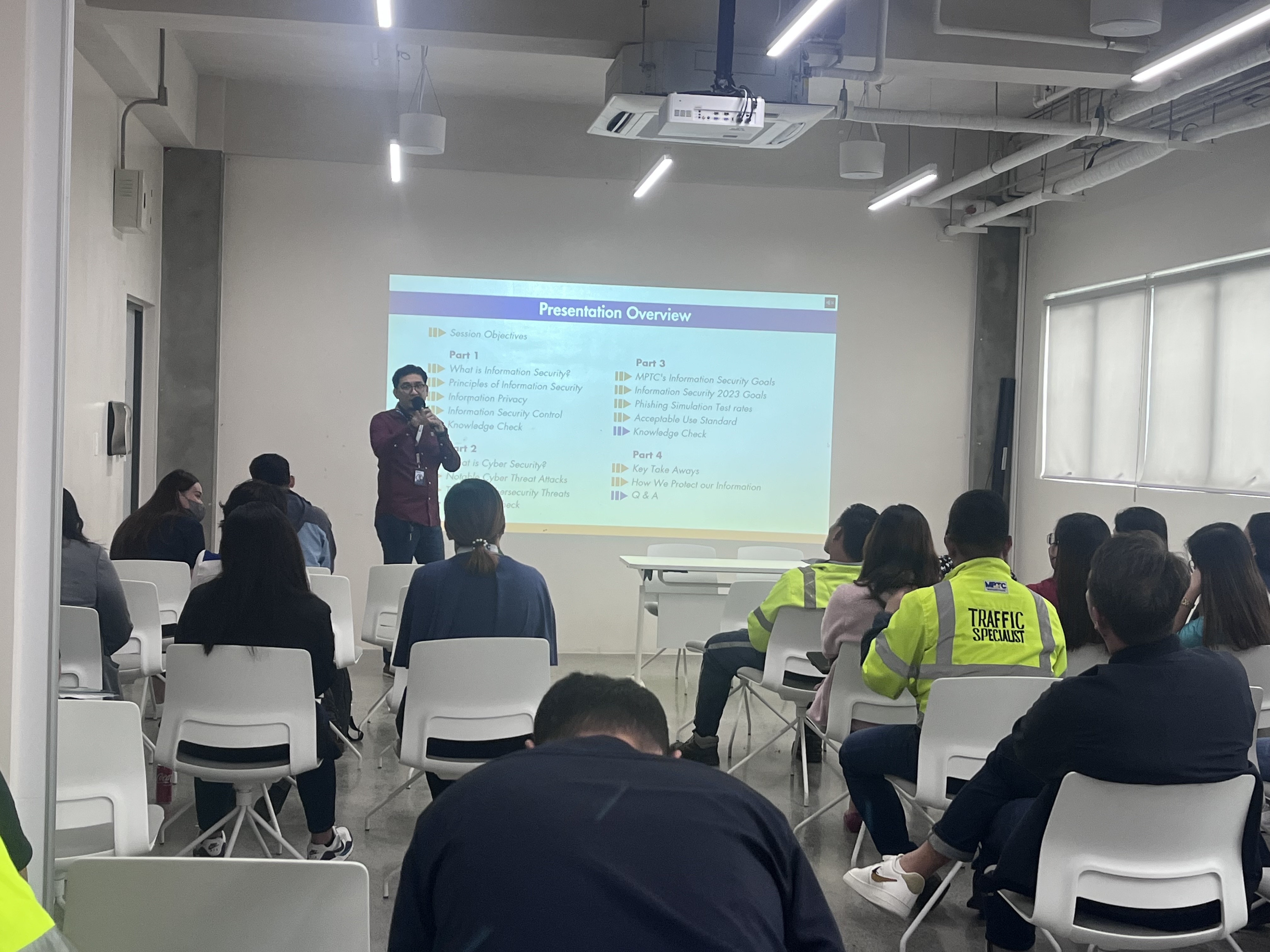 To support the Company in achieving cybersecurity maturity, HRAD and MPT South Technology Management Division collaborated with MPTC Information Security Team led by Mr. Genaro “Boyet” Villanueva, Jr., Information Security Manager, and Mr. Henry Macasiano, AVP for InfoSec and Infrastructure, together with the rest of the InfoSec Team, Cathy Bernabe and Josh Franco. The session was attended by different representatives from Legal, Operations, Finance, TMD, TDE, and HRAD.