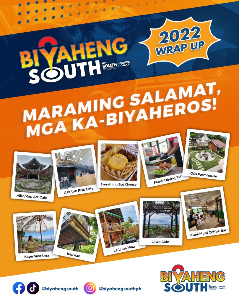 - Biyaheng South was able to feature a total of 33 local tourist destinations in the provinces of Cavite and Laguna.