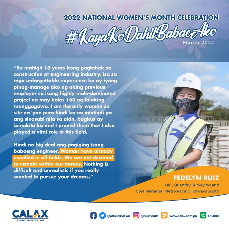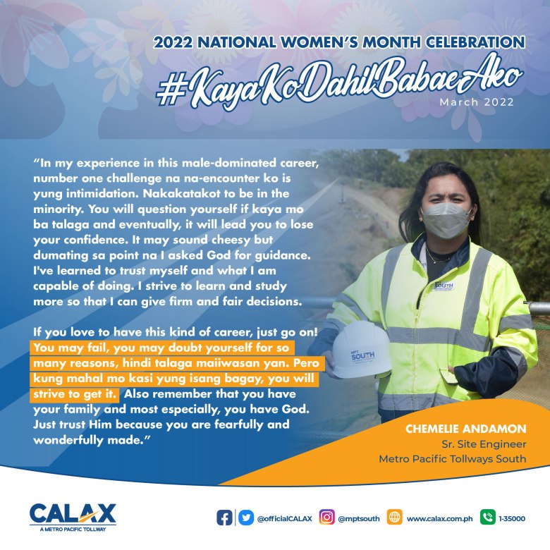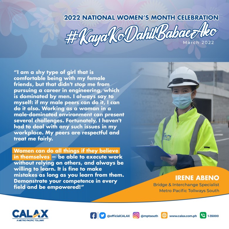 For this year’s Women’s Month Celebration, we will be flaunting some of MPT South’s women workforce to show how they excel and prosper in their respective fields, especially in areas stereotyped to be dominated by men.